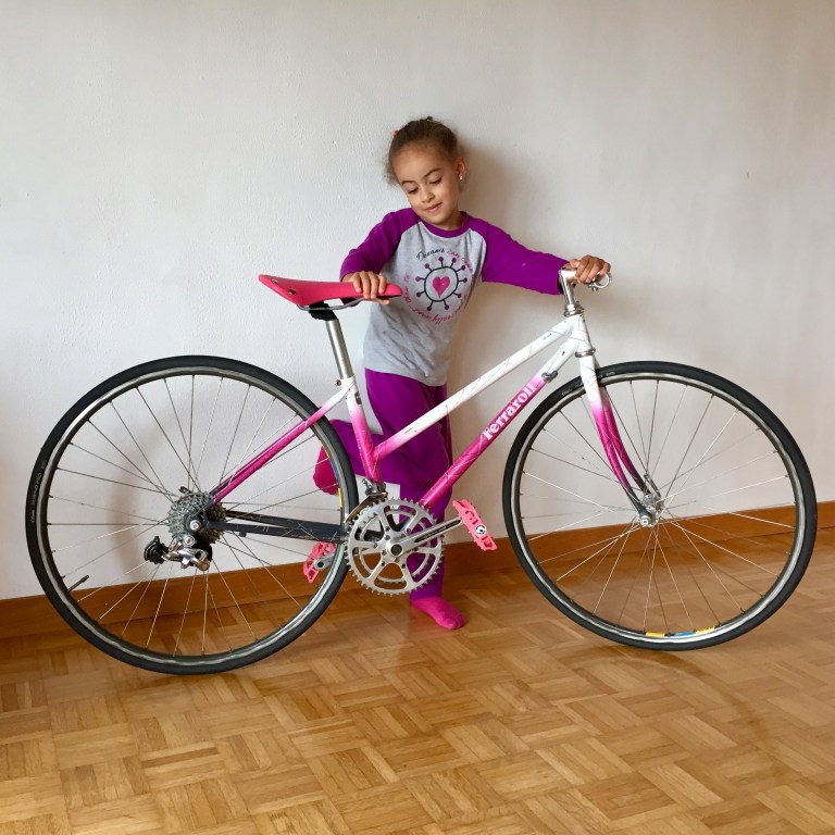 To be continued next year, when Sarah will be tall enough to ride it safely and efficiently.