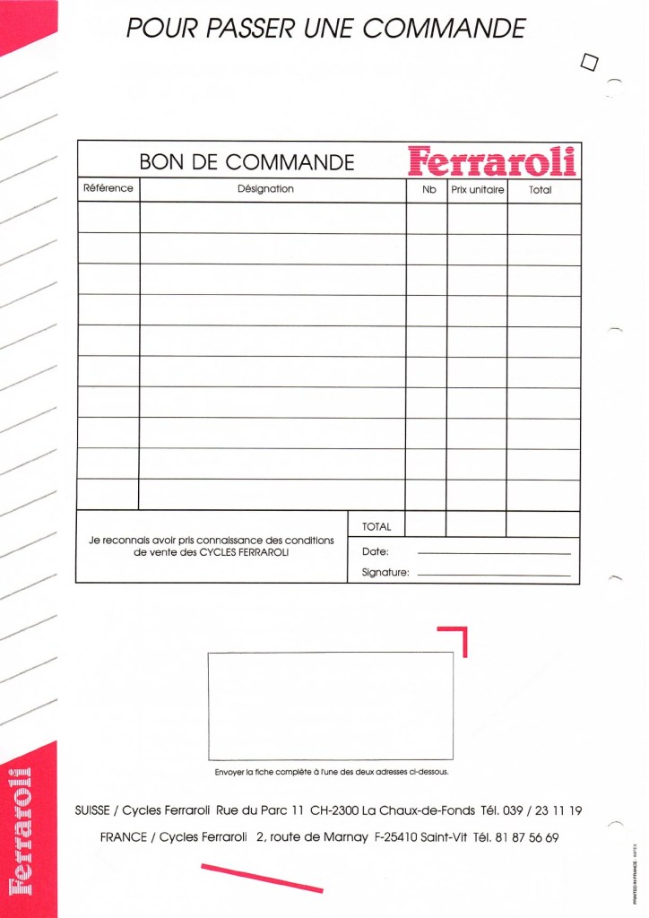 Back when mail order was just that: no faxes, no web sites and no apps, just fill out the forms, attach a stamp, and send it to your nearest Ferraroli office.